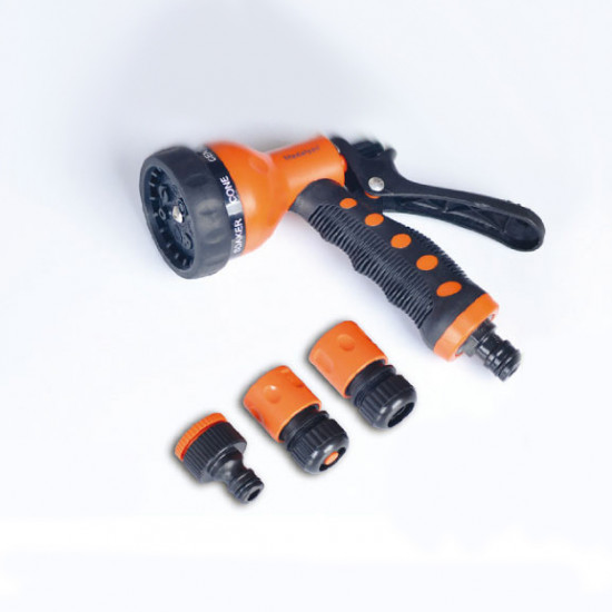 Acest pistol functioneaza la presiune si poate fi conectat la furtun de 1/2 inch. Capul de reglare a pistolului este dotat cu 7 functii pentru diferite forme de stropit.